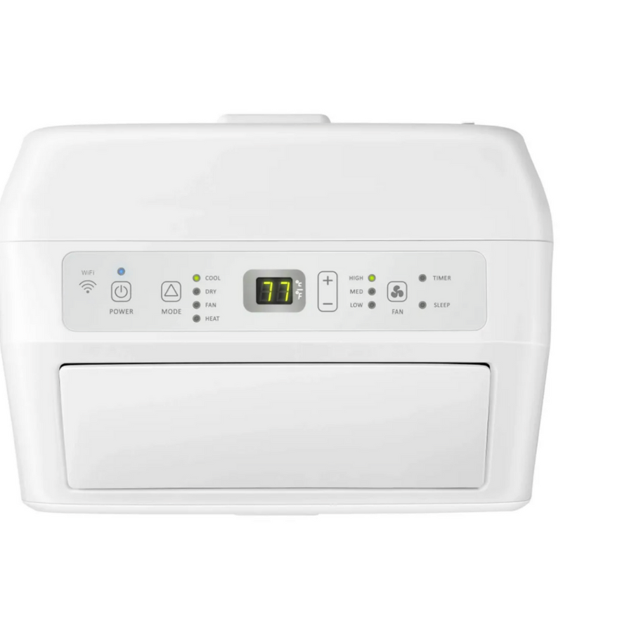 El aire acondicionado portátil AP55023HR1GD, ideal para habitaciones grandes (550 pies cuadrados o menos) con 8000 BTU de potencia de enfriamiento, brinda funciones más eficientes y fáciles de usar durante todo el año.